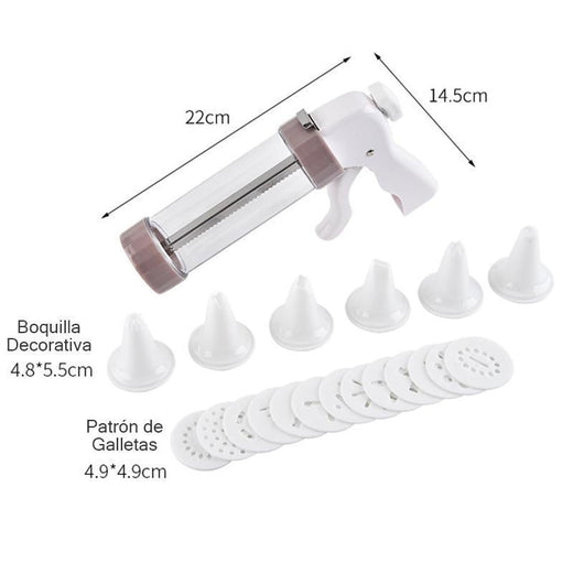 • Tamaño de la pistola de decoración de galletas: 22 x 14.5 x 5.5cm (LxWxH).